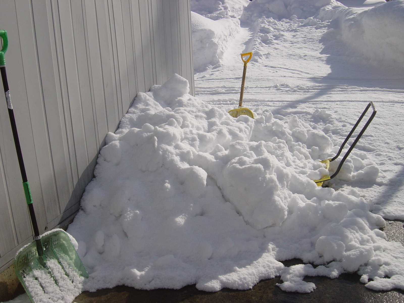 一方、自宅前はご覧の有様で、雪山が残されていました。こうした雪は